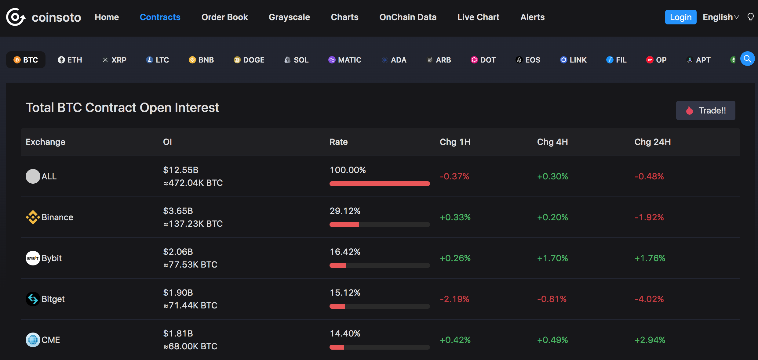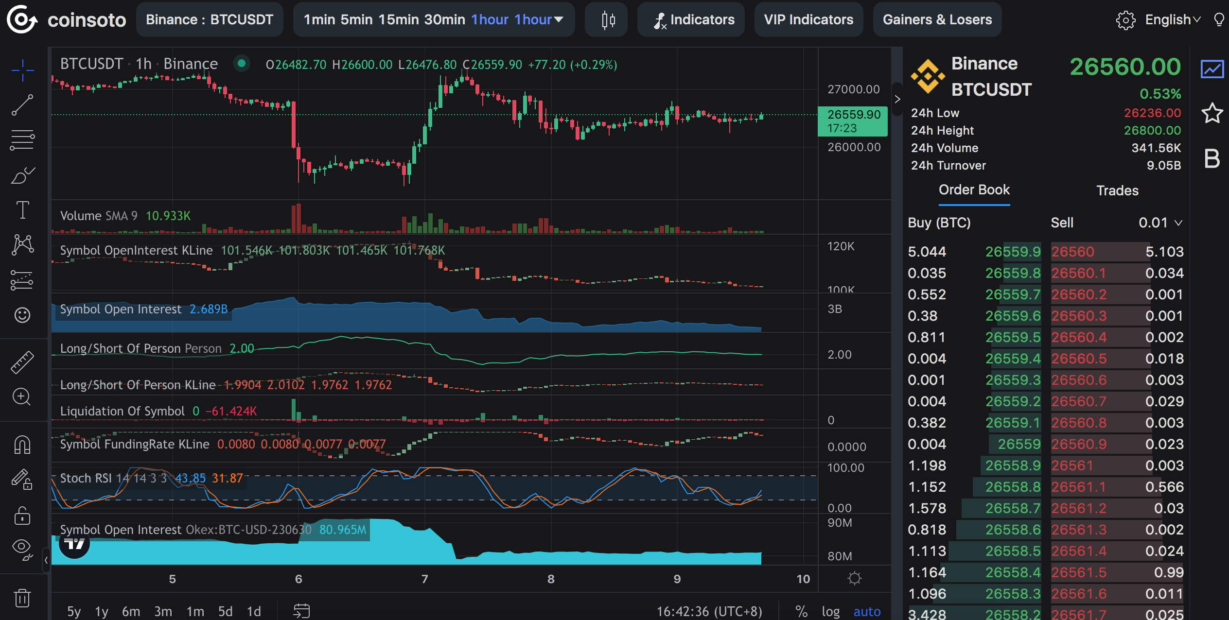 Here we focus on the specific use of several commonly used indicators of the coinsoto contract data. The following data are all based on BTC as an example.