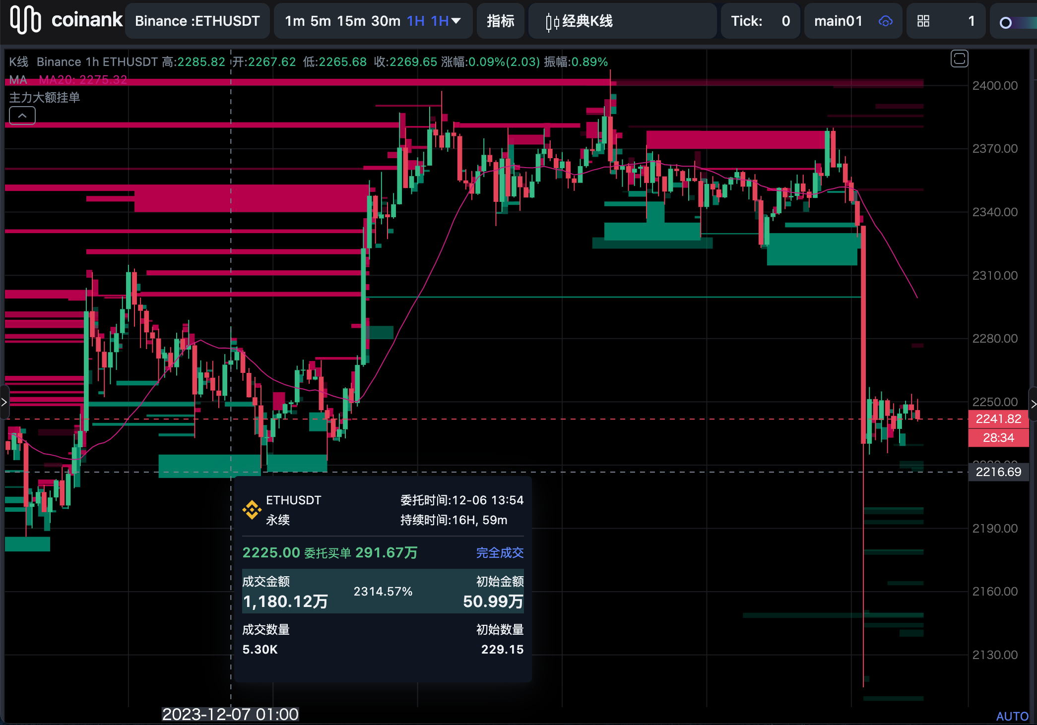 主力大单是Coinank团队基于市场盘口数据,对大额委单的状态进行实时监控,实现对主力挂单情况的跟踪,帮助投资者抓住交易机会。